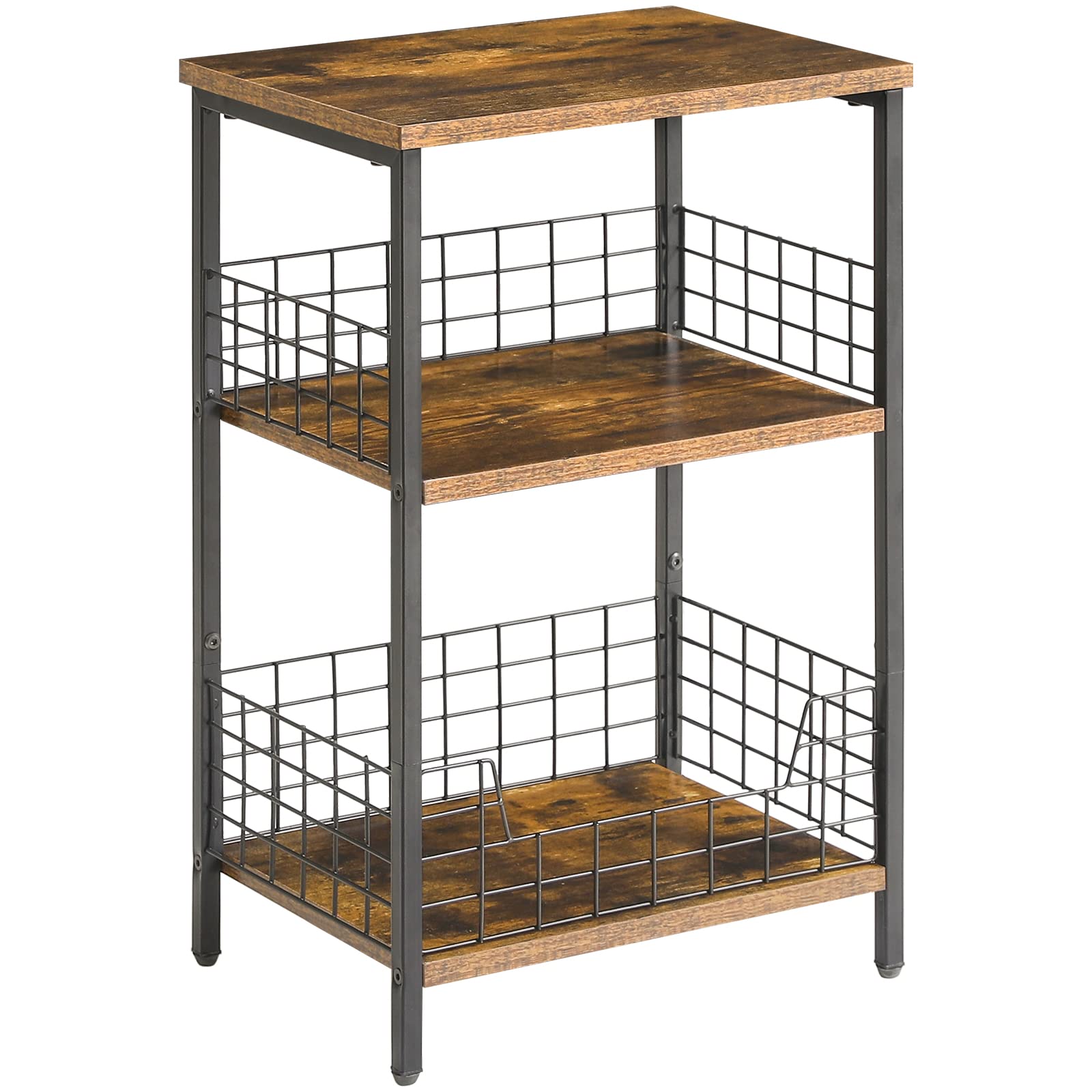 YMYNY C形茶卓、サイドテーブル、ソファ サイドテーブル、ベッドサイドテーブル、ヴィンテージ風、メッシュパネル付き、安定した、組立簡単、40×26×61.5cm、リビングルーム、寝室、茶色 JPHST004H