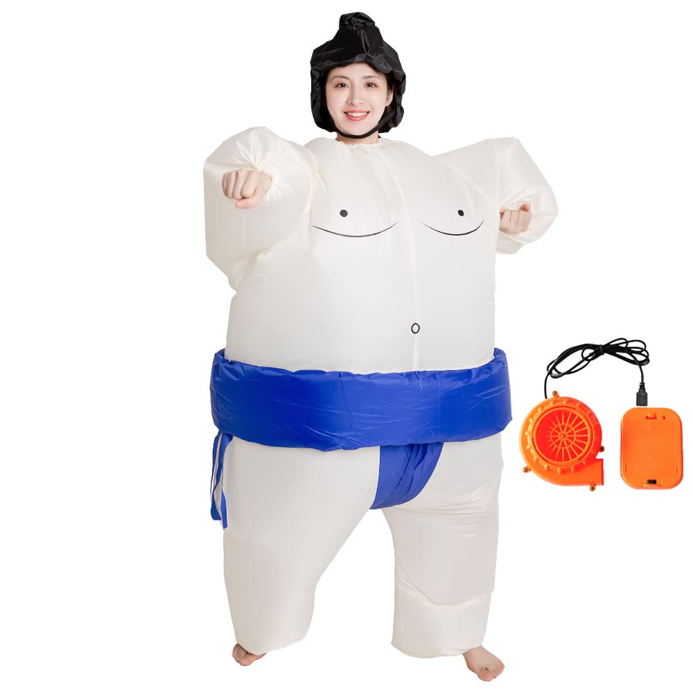 [Socpuro] 力士 コスプレ 相撲コスチューム3点セット 着ぐるみ 空気充填 相撲 膨張式 おもしろ仮装 身長150-200CM イベント 文化祭 パフォーマンス道具 (ブルー)