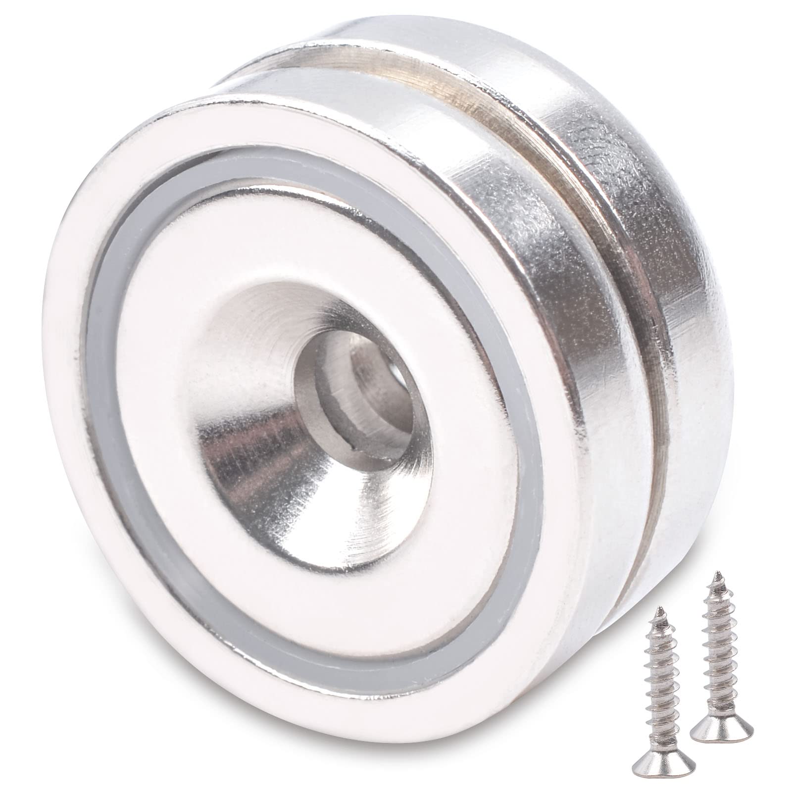 マグネット 強力ネオジム磁石,25x8mm穴径5.5mm小型強力穴あき磁石、ネジ付き。,木製パネル用ラウンドベースマウントマグネット、壁掛け用、キッチン、オフィス、バスルーム、ウェアハウス(2個入り)