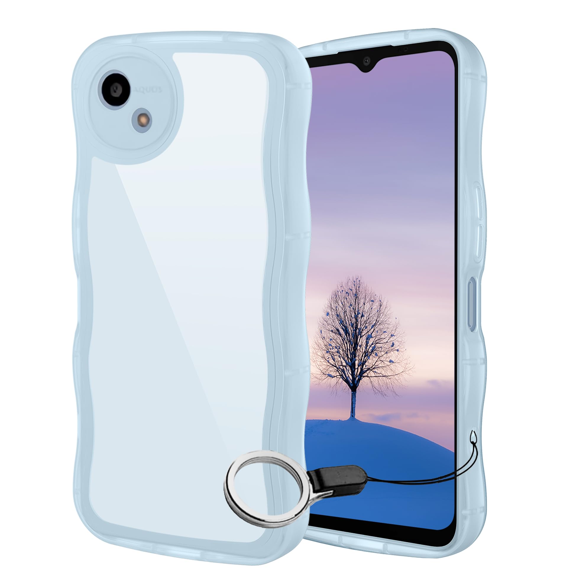 AQUOS wish4 ケース クリアブルー ウェーブ SH-52E TPU波状のバンパー 透明 スマホケース かわいい うねうね アクオス ウィッシュ4 SH-52E ウェーブ デザイン 可愛い 韓国 女性用 薄型 人気 おしゃれ 耐衝撃 ストラップホー