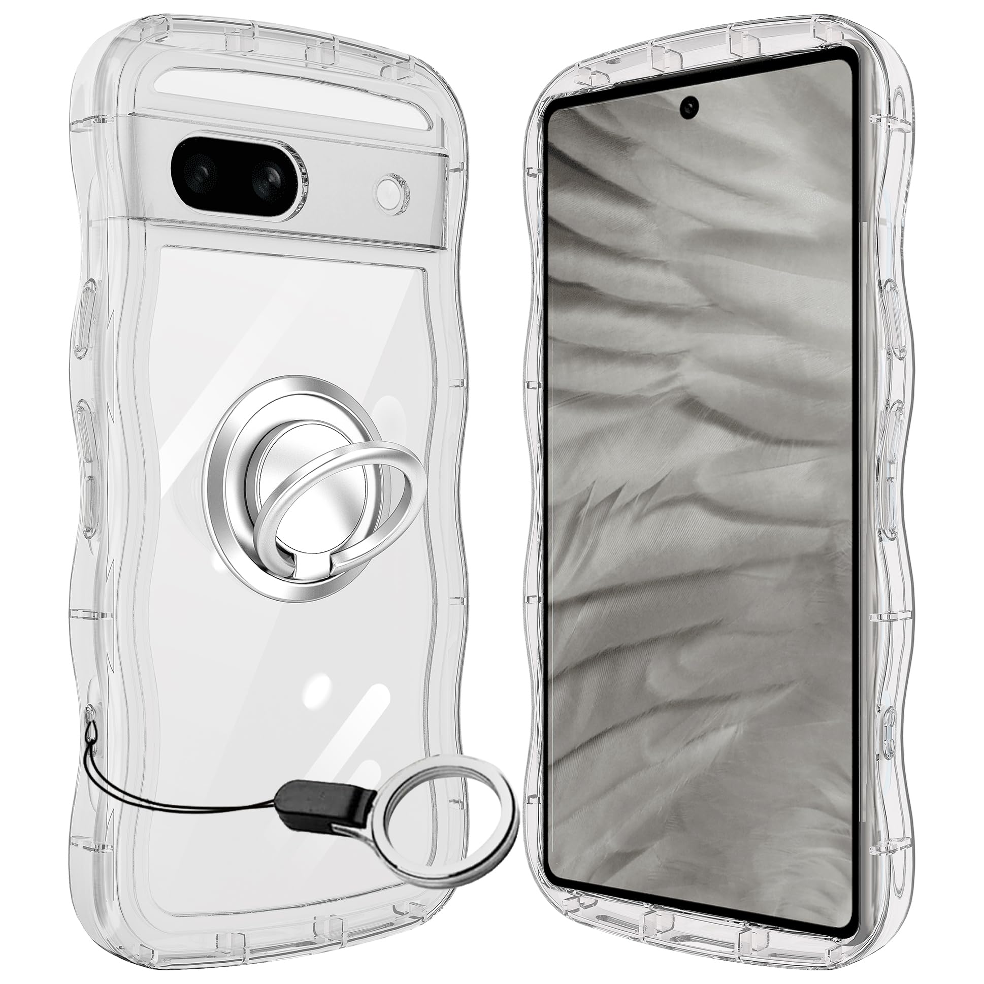 Google Pixel 6 ケースクリア ウェーブ リング付き グーグル ピクセル6 TPU波状のバンパー 透明 スマホケース かわいい うねうね グーグル ピクセル6 ウェーブ デザイン 可愛い 韓国 女性用 薄型 人気 おしゃれ 耐衝撃 ストラップホ