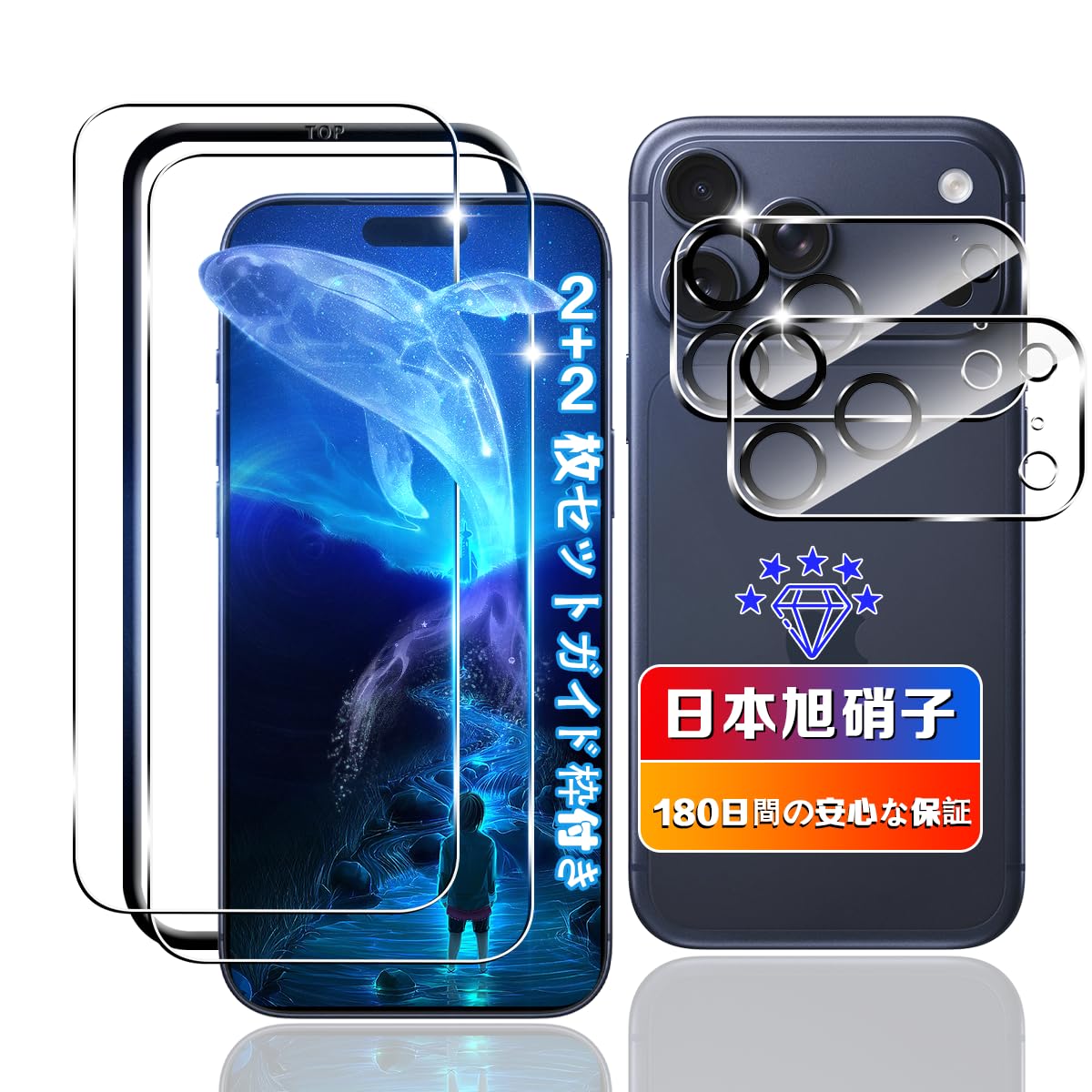 【wnunbg 2+2枚セット】 対応 iPhone 17 pro ガラスフィルム 2枚+ レンズフィルム 2枚 【日本旭硝子素材採用 ガイド枠付き】 用 アイフォン17 pro フィルム 耐衝撃 用 iPhone17 pro 保護フィルム 強化ガラス 液