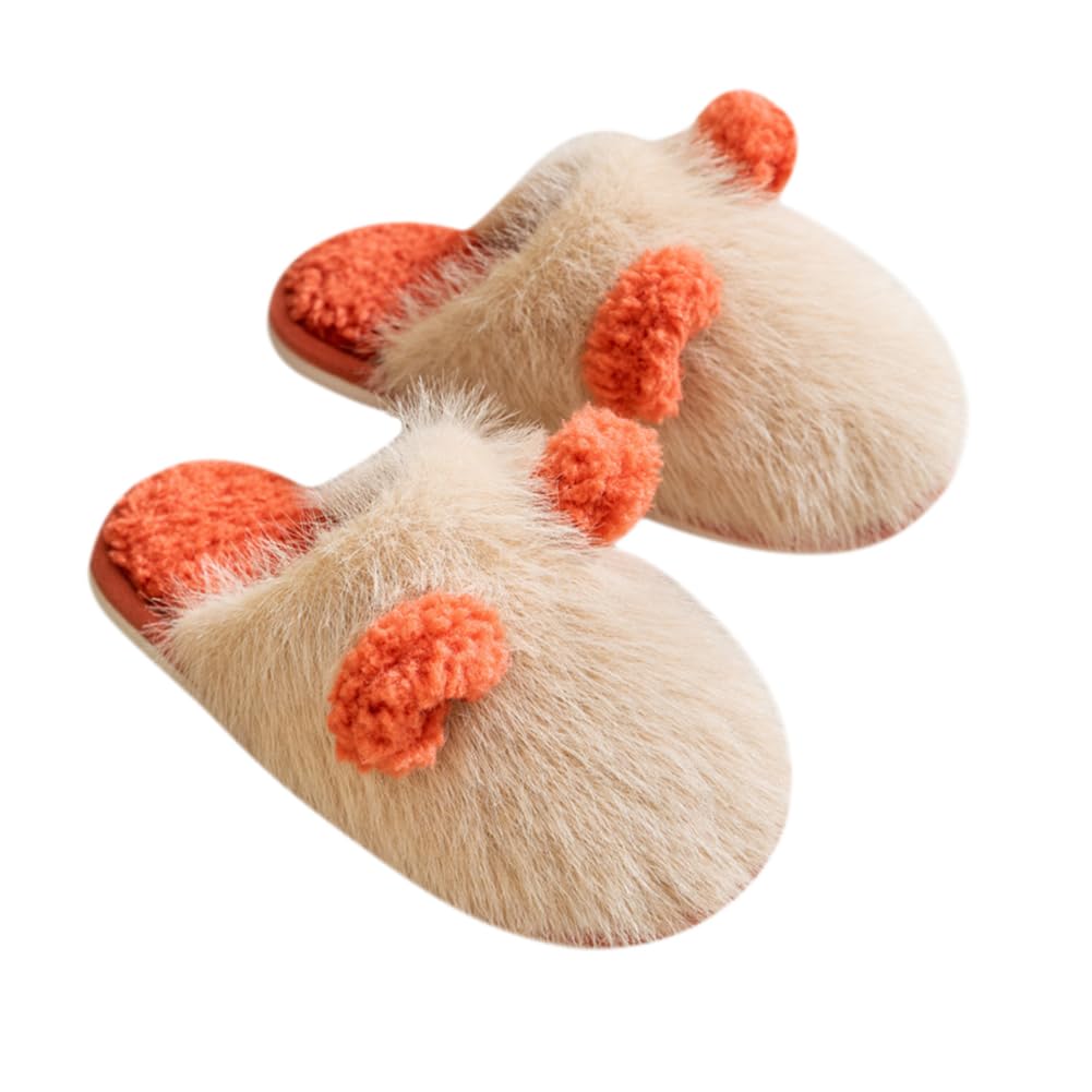 [Euyqs] ぬいぐるみスリッパ かわいい獣耳コットンスリッパ 秋冬暖かいスリッパカップルスリッパ (#2 レッド, 24.0 cm)