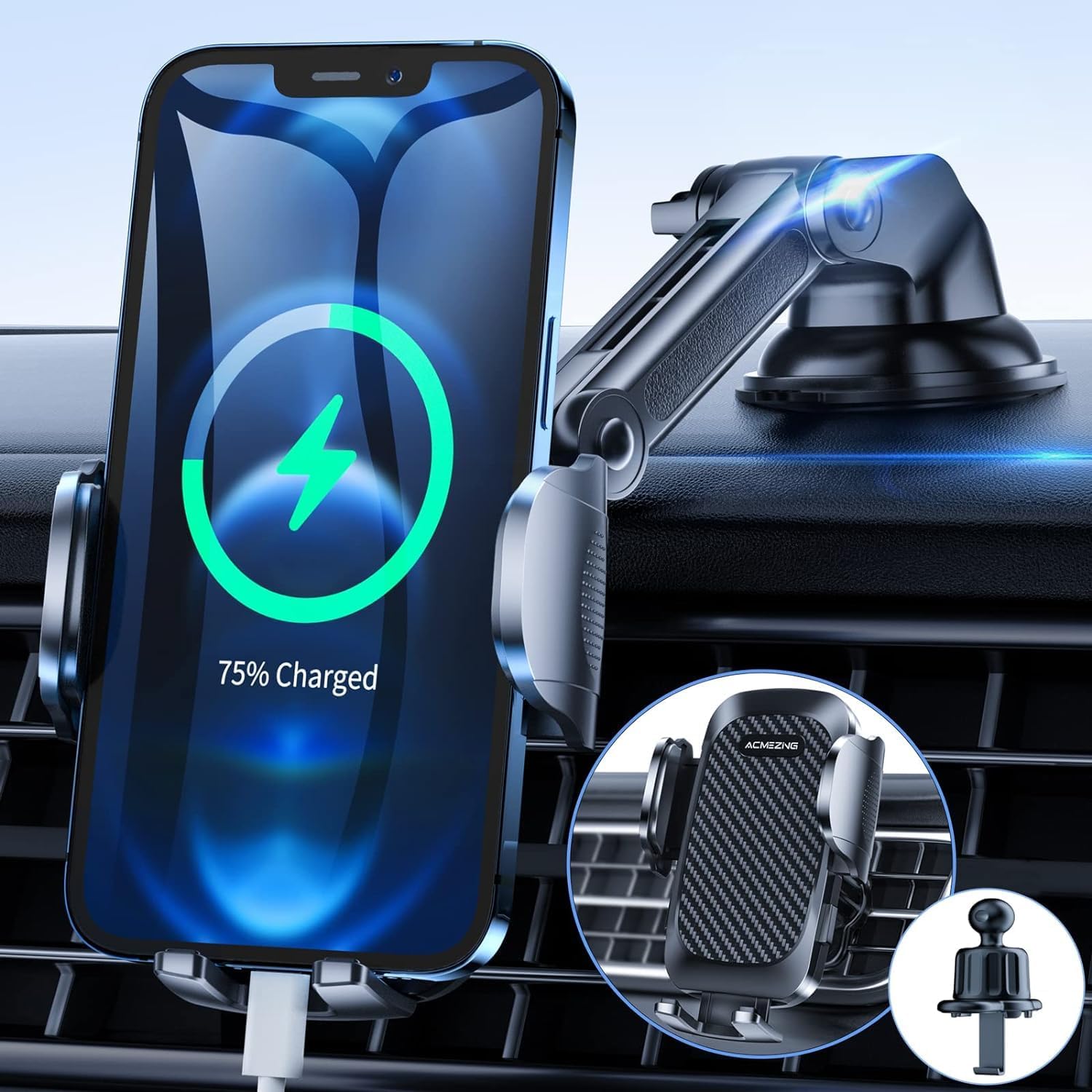 ・【革新的な360°回転ベース・スマホホルダー 車・最適な運転視界角を確保】高い再購入率ブランドとして、ACMEZINGは数年間、車 スマホスタンドの研究開発に力を注ぎ、車用品に関する何千もの市場調査やお客様の声をもとに、日本のドライバーに最も適した「360°回転アーム式ベース +業界トップ二重フック」車載ホルダーを独自に開発しました。市販の車用スマホホルダーとは異なり、土台の360度回転機能により、取り付け後、取り外すことなく左右に調整できる。時間を節約して、快適で安全な運転視界を確保することが可能。また、360°ボールジョイントで、横でも縦でもスマホの角度を自由に、全てお客様の思い通りです。用途に合わせて向きを変えられて便利です。お陰様で、累計販売台数100000+万台!何をためらっているんだ、これは見逃せない選択!・【進化型金属製二重フック・100%落ちません】従来のプラスチック車 スマホスタンド エアコン 吹き出し口単一フック式とクリップ式は異なり、弊社の車載スマホホルダー金属フックは二重フック式、ダブル3角構造で、5倍以上の安定性。高品質な航空機用材料が採用し、耐久性が50倍以上、揺らない、落ちない、異音なし、ガッチリエアコン吹き出し口に固定できます。落下する可能性は0%!安定感抜群!また、ユニークなスナップ調整により、吹き出し口のブレードがたるむのを防ぎ、エアコンの風を正しい方向へ確実に送ります。これは、現在市販されているすべての車用スマホホルダーで実現しているわけではない。でも、弊社なら可能です。安心して運転に集中することができます。・【耐荷重55KG、四季温度でも耐える超強真空ゲル吸盤】車載スマホホルダー強力ゲル吸盤は、研究開発チームに海洋生物のタコ吸盤の原理に基づいて、メッシュの断熱樹脂素材や高品質なポリカーボネートと三層ナノゲル三層を採用して、拡大された吸盤底部(直径75mm)、吸引力と耐久性の大幅な向上!「耐荷重55KG」で他社携帯ホルダー 車より、吸着力50倍が高くなり、急ブレーキやデコボコ道でも取れる心配はありません。どんな天候でも(-40℃〜101℃)にも順調にしっかりと固定します。365日以上の経年変化テストでも吸着力は劣化しません。スマホホルダー車取り外し後、ご愛車の表面の革を傷つけず、跡も残らないので、安心感と快適さを提供します。更に、吸盤が汚れて吸引力が弱くなった場合でも、水洗い後に乾燥させることで吸着力復元でき、何度でも使用することが可能。非常に経済的で実用的なカー用品です。プロドライバー大絶賛!・【より使い勝手良い・幅広い互換性】車用スマホホルダーの背面のボタンをワンタッチすると、片手で触れるだけでわずか0.1秒でサイドアームを開き、簡単かつ便利です。 有線イヤホンケーブルと充電ケーブルの使用に影響を与えない携帯スタンド 車下部の設計。従来の車用品安くパネルや通常のプラスチックパネルとは異なり、弊社のスマホ 車載グッズナノカーボンファイバーを採用しており、耐摩耗性、耐久性に優れ、上から下、左から右へとスマホを万全に保護します。スマホ ホルダー 車載用は横幅5.5cm-9.5cmの端末に対応、下支えも1.3cm伸縮なので、iPhone/Samsung/Galaxy/Sony/Xperia/LG/SHARP/OPPO/AQUOSなど4-7インチ大画面のスマホも対応可能 、厚手の手帳型ケース、Magsafe対応ケース 、 シリコーン 、クリア(全透明) 、 ゴム 、レザー 、リング付きなど様々な機種に対応。ヨタ/日産/マツダ/スズキ/スバル/BMW/ホンダ/ジムニー/n-boxなど 99%の車種に適合。・【類似品・模倣品にご注意ください】市場には、類似品・模倣品が多数出回るようになりました。でも、同様の製品と弊社のスマホ車載ホルダー製品を比較すると、粘着力や固定力、品質管理。安価なエアコン吹き出し口フックが付属している商品もありますが、このようなフックはご愛車吹き出し口を破損させることがあります。非常に不安定で、携帯電話を落下させる危険性があります。すごく安価な商品には注意が必要です。