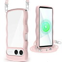 Xperia 10 VII ケース クリア ショルダー エクスペリア 10 VII カバー うねうね 透明 かわいい 耐衝撃 スマホケース ストラップ付き 取り外し可能 長さ調整可能 首かけ 肩掛け 薄型 軽量 TPU ワイヤレス充電対応(ピンク)