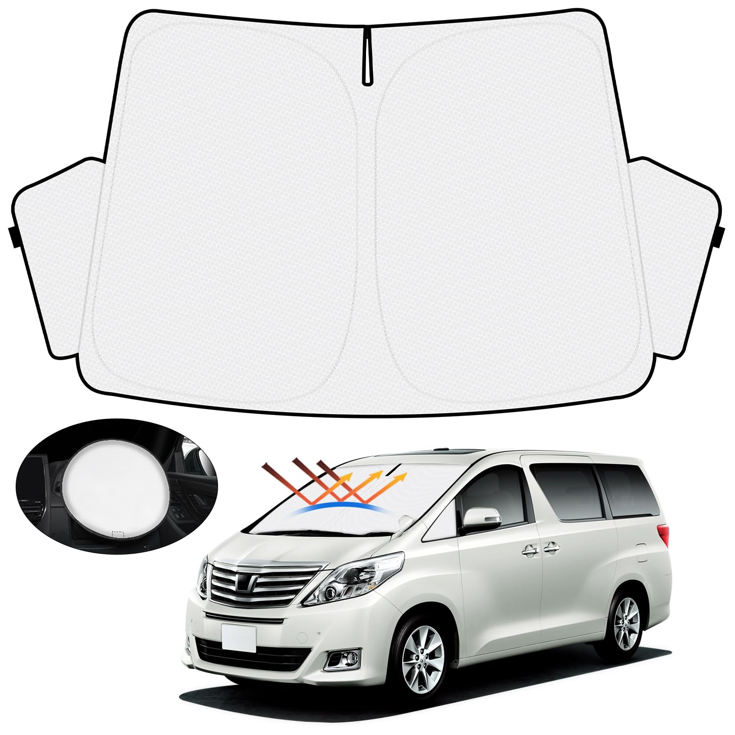 【ハンドル日よけカバー付き】Mozan トヨタ アルファード ヴェルファイア 20系 サンシェード フロントガラス用 ALPHARD VELLFIRE 20 2008年-2015年 車用サンシェード UVカット 日よけ 日差しカット 遮光 断熱 折り畳み式