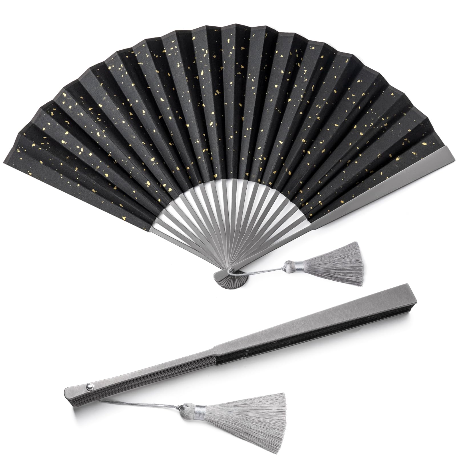 [FEGVE] チタン ブラック 扇子 メンズ 折りたたみ式 紳士用 着物 和装小物 浴衣用 花火大会 お祭り 猛暑対策用 太極拳カンフー用 (6寸(扇面:布))