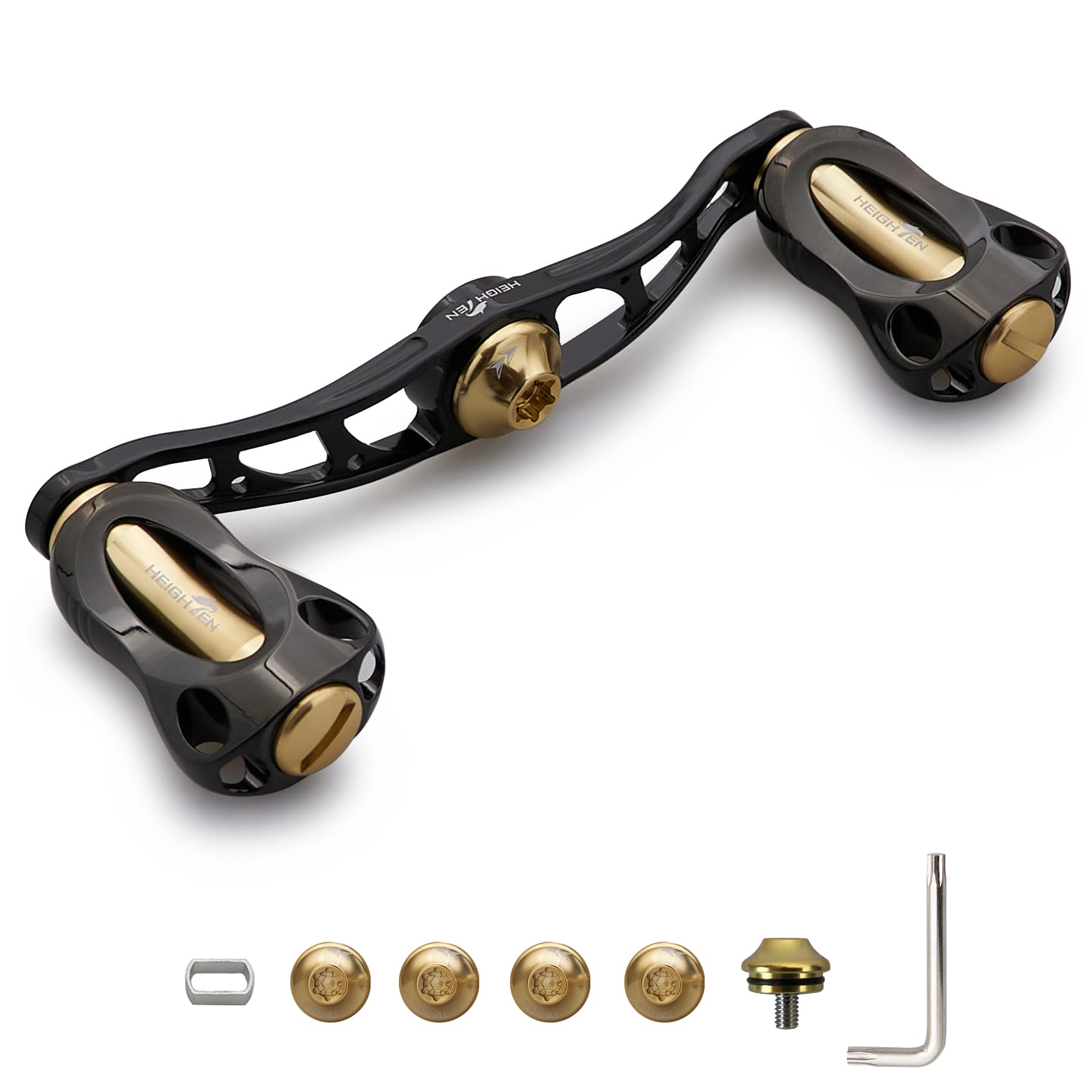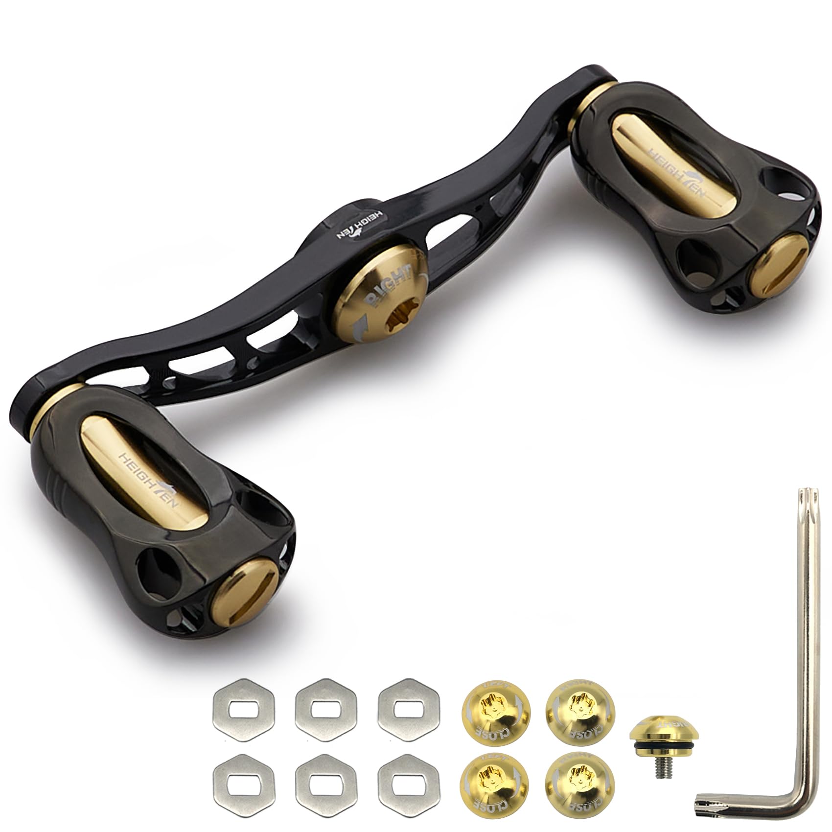 HEIGHTEN 115/88mm リール ハンドル 22mm ノブ搭載 シマノ(SHIMANO) ダイワ(DAIWA) アブ(Abu) 通用 ベイトリール 用 Fan Series (ブラック&ゴールド, 115mm) (860)
