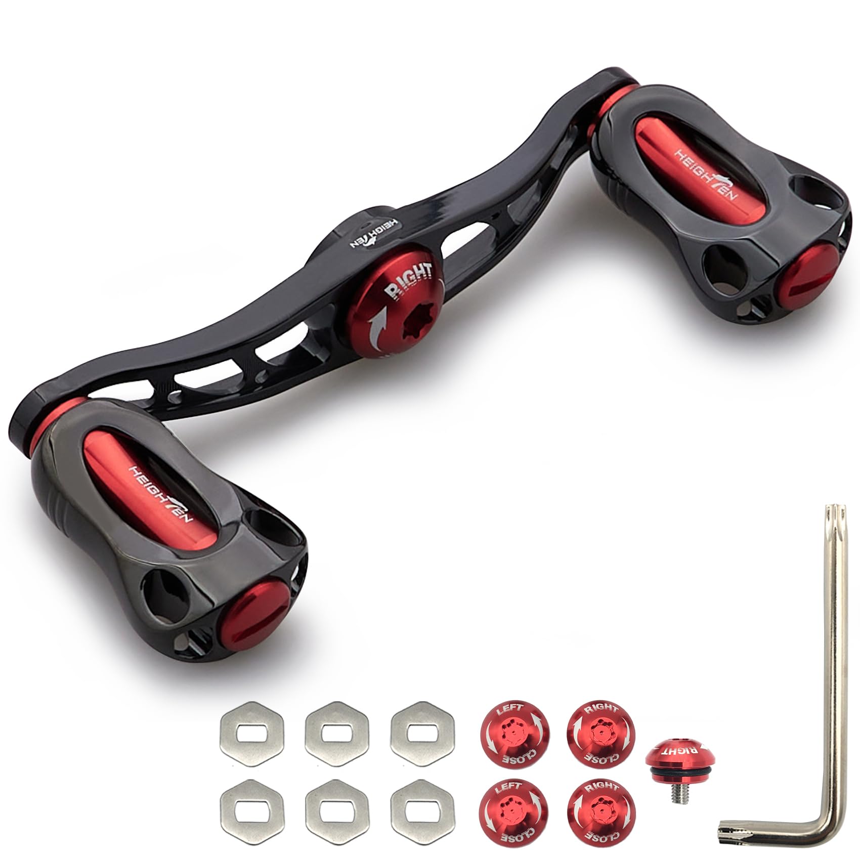 HEIGHTEN 115/88mm リール ハンドル 22mm ノブ搭載 シマノ(SHIMANO) ダイワ(DAIWA) アブ(Abu) 通用 ベイトリール 用 Fan Series (ブラック&レッド, 115mm) (861)