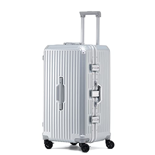 [GGQAAA] 大容量 荷物 トロリースーツケース 女性 回転自在のキャスター 5輪キャスター ダイヤルロック 出張 留学用スーツケース スーツケース 多機能 アルミフレーム Lサイズ (Silver)