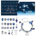 アドベントカレンダー 2025クリスマス 24日間 カウントダウン ペンダント ジュエリーセット ブレスレット ネックレス ギフトボックス ブルー 女性 ビーズ 24個