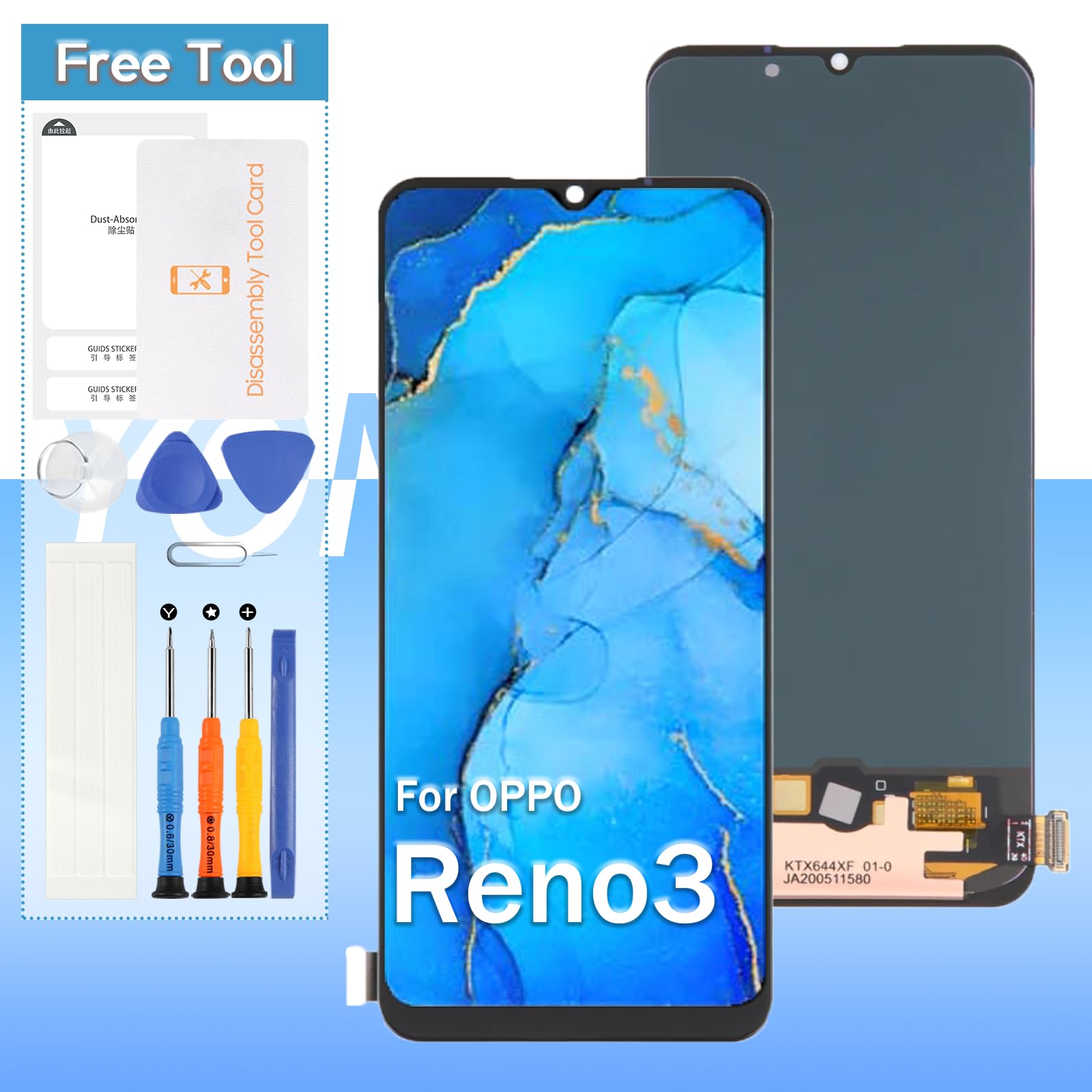 OLED For OPPO Reno3 /F15 /A91 /F17 /K7 /Find X2 Lite 液晶パネル 画面交換修理用 (指紋認証をサポート)タッチパネルセット 6.4 インチ CPH2043 CPH2001 PCPM00, CPH2001