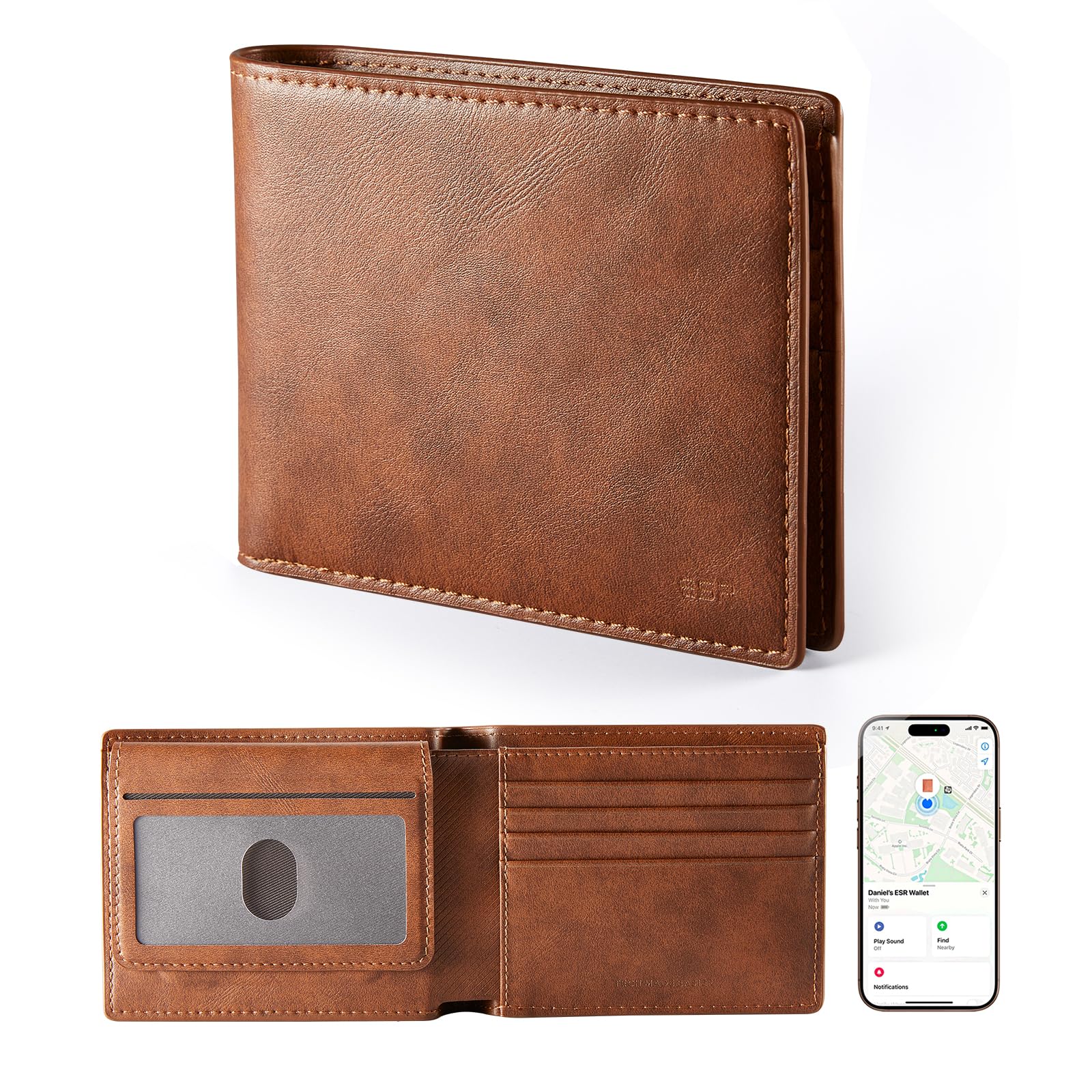 [ESR] Geo ウォレット Find My「探す」機能付き RFIDブロック メンズ・ミニマリストカードホルダー カード9枚と紙幣15枚収納 二つ折りカードホルダー ブラウン
