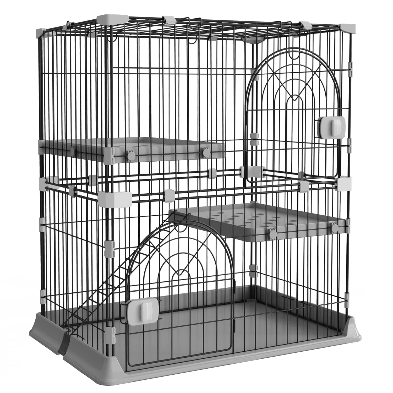 Alebert 猫ケージ キャットケージ 幅70*奥行43*高さ89cm 猫 ケージ 2段 大型 ペットケージ 折りたたみ ドア付き ワイド扉 多頭飼い 脱走防止 猫ハウス 組み替え自由 組立簡単 おしゃれ 2色可選択 (2段, グレー)