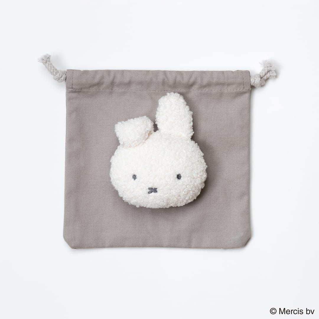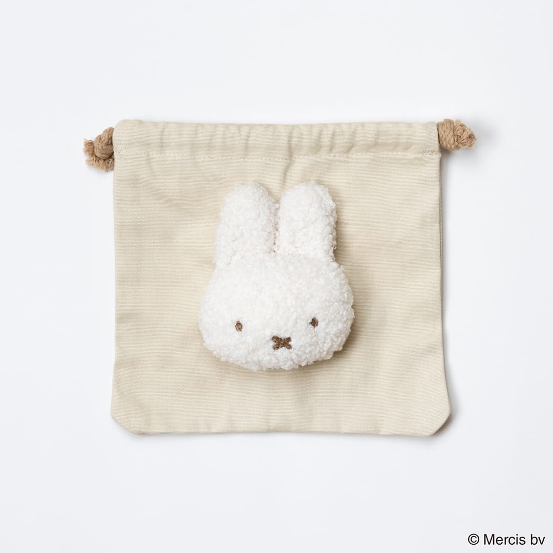 LOT:3 ミッフィー、ボリス、ダーンの立体的なお顔が付いたぬいぐるみシリーズ。裏面の織ネームもポイントです。コスメが入る普段使いしやすいサイズの巾着です。全3柄 SIZE:W180×H180mm 素材:本体:綿、キャラクター部分:ポリエステル