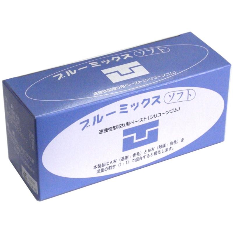 ブルーミックス ソフト 100g容量(約):100g(50g×2)素材:シリコーンゴム、セット内容:A材(基材:青色)50g、B材(触媒:白色)50g混合用50mlカップ(ポリプロピレン製)1個、ディスポーザブルグローブ(ポロエチレン製)1組使用期限:製造より2年