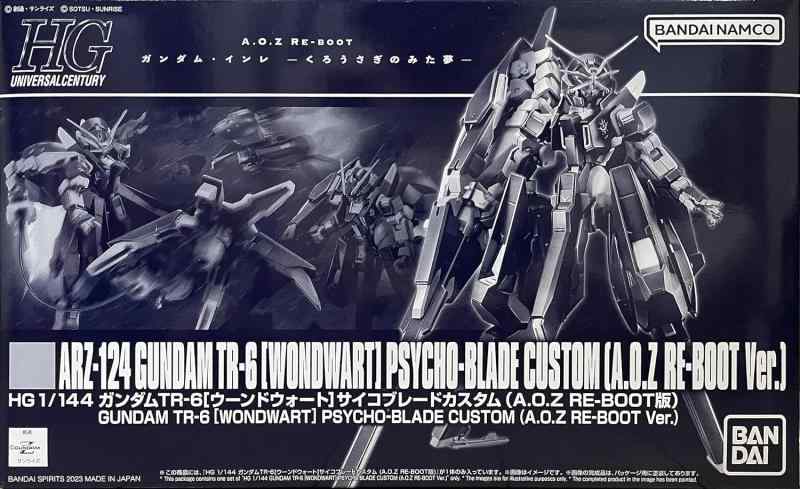 組み立て式プラモデル『A.O.Z』の胎動ふたたび サイコブレード装備――"レジオン"のTR-6 『A.O.Z RE-BOOT ガンダム・インレ-くろうさぎのみた夢-』より、 「レジオン」が運用するガンダムTR-6[ウーンドウォート]サイコブレードカスタムを HGシリーズで商品化。 特徴的な機体カラーや機体形状を新規造形を交えて再現。 パーツ構成とオプションの追加で拡張性が向上。