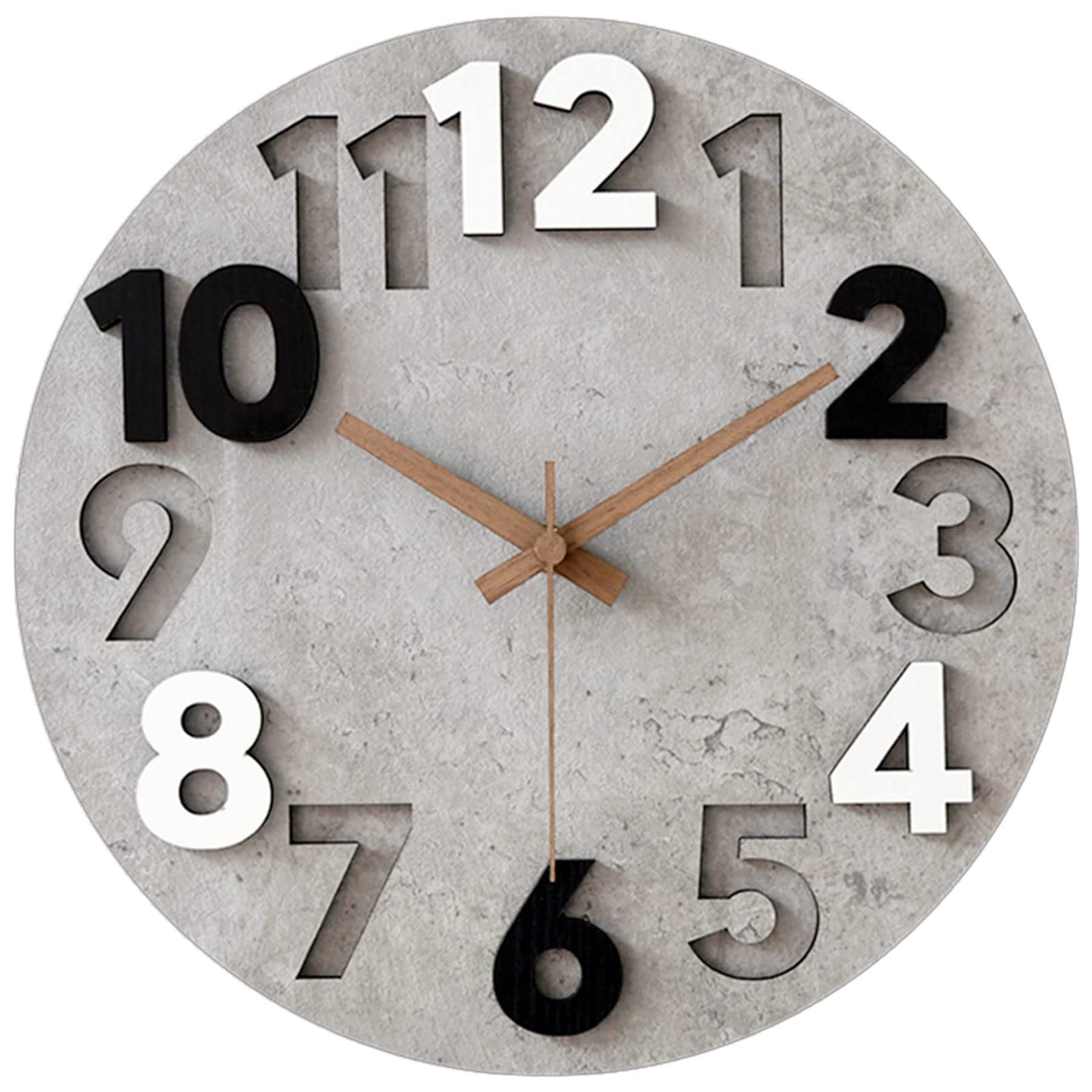 §BOMU-TECH∞BOMU 壁掛け時計 北欧 おしゃれ 音がしない 3D立体数字 掛け時計 ウォールクロック クロックインテリア欧米風 静音 見やすい 立体数字 直径30cm 静音 非電波 ((グレー)B)