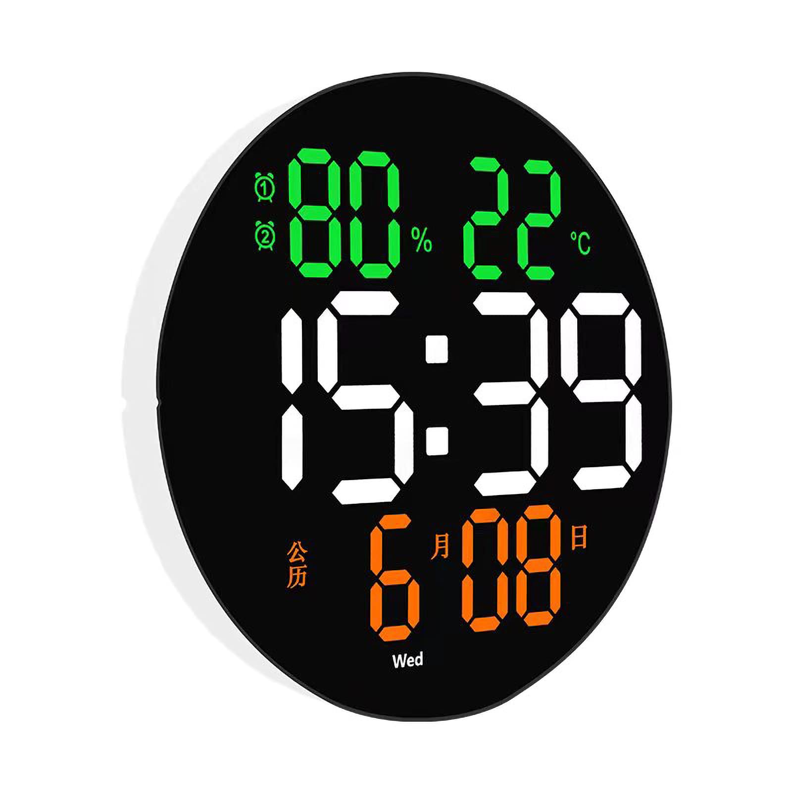 §BOMU-TECH∞BOMU 壁掛けデジタル時計 静音 発光 LEDデジタル電子壁掛け時計 目覚まし時計 音なし 壁掛け温度計湿度計 LEDデジタル柱時計 壁飾り省エネ自動 センシング発光 壁掛け電子時計(日本語説明書付き)