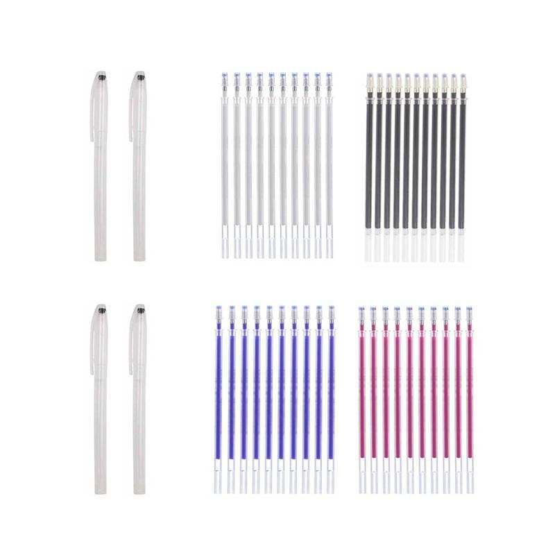 YIXINLYMY チャコペン 布用ペン 刺繍キット 44本セット4色 熱で消える 水溶性 裁縫用チャコペン 消えるペン 白 黒 赤 青 替芯 各10本 裁縫用印付けツール 刺繍 ハンドメイド ソーイング 印付けツ