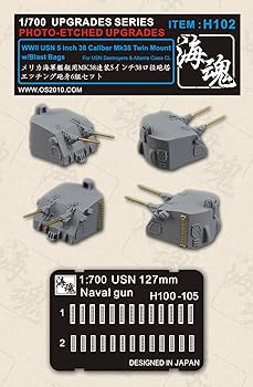 【中古】1700 アメリカ海軍 艦艇用MK38連装5インチ38口径砲塔エッチング砲身6組セット H102 WWII USN 5 inch 38 Caliber Mk38 Twin Mount wBlast Bags Fo