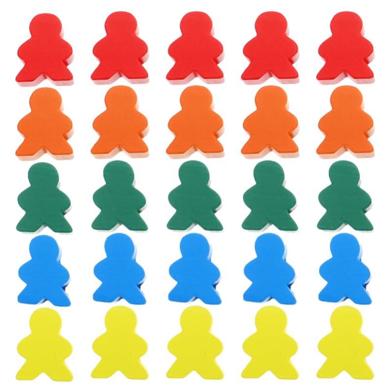 カラフルな木製チェス駒 50個セット 赤・オレンジ・黄色・緑・青 ボードゲーム用 子供と大人向け 卓上装飾にも最適