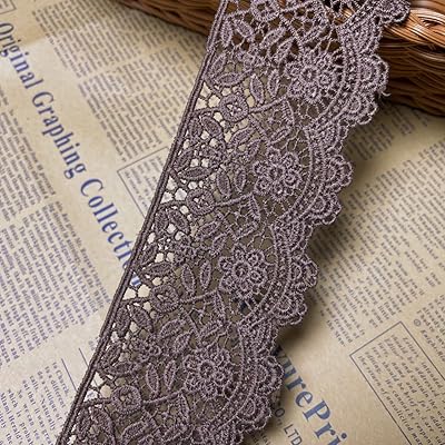 幅:6cm 弾力なし、花モチーフ付刺繍入りレース、アクセサリー テーブル掛け、カーテン、ウェディングドレス、DIY、服装装飾(1バック2ヤード)に適用すること。 (灰色)