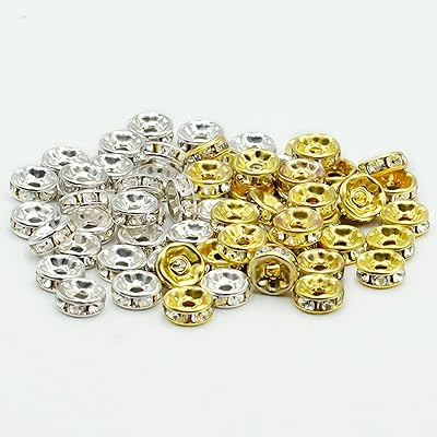 【BEAUTY PLAYER】ロンデル 8mm 平型 200個 ゴールド シルバー 各100個 ラインストーン付き スペーサービーズ メタル ビーズ アクセサリーパーツ ジュエリー 手芸 クラフト用品 手作り素材 DIY材料 (8mm)