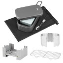 yETO アウトドア メスティン セット 硬質アルマイト加工 目盛り付き 6点 2合飯盒 ポケットストーブ 風除板 網 スプーン 収納袋付き アウトドア 飯盒 キャンプ用品 調理器具 クッカーセット