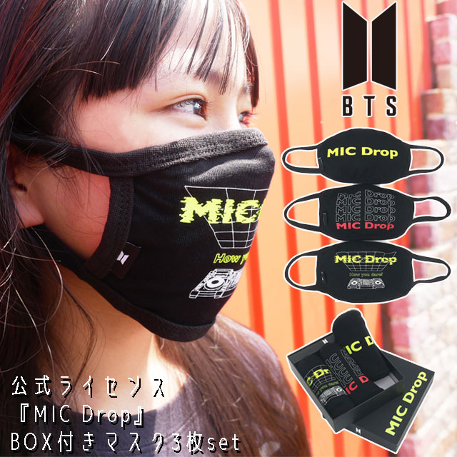 \ポイント8倍/最強翌日配送 BTS 公式グッズ マスク 3枚1セット 防弾少年団 公式ライセンス 黒マスク 布マスク 綿マスク MIC Drop レディース メンズ ボックス入り 9586 ab-c