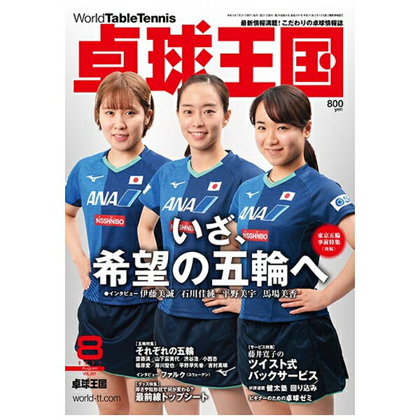 ●2021 年07 月20 日 発売 ●212ページ ●【東京五輪直前特集】 東京五輪観戦ガイド「卓球ニッポン、メダルの行方を占う!」★ 2021卓球NIPPONドリームマッチ 超人たちのゴールド・テク★ 開幕! 東京2020パラリンピック★ 世界に発信される卓球台『MOTIF』の美しさ ●【読み物】丁寧(中国)五輪ではないラストステージへ★ ●【企画】インターハイ開幕直前予想★ 出場チーム・選手 全リスト ●【技術】藤井寛子のツイスト式バックサービス Vol.2★ ●【初心者】ビギナーのための卓球ゼミ 第4回★ ●【報道】日本リーグ★/インカレ★/アジア選手権代表選考合宿★/ヨーロッパ選手権 ●【マンガ】卓球ものがたり★ ●【インタビュー】早川周作(琉球スティーダ代表取締役) ●【インタビュー】PEOPLE[島立英樹/梅村礼/平岡和博] ●【グッズ】やっぱりスゴい! 選手モデルラケット★ ●【読み物】真説 卓球おもしろ物語 その15 ●【連載】ラージボール・バイブル/卓将のピンポイント・レッスン/練習事典/奇天烈逆も~ション/悩みを自信に変えろ!/他