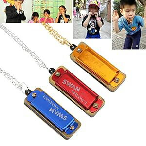 【ベストディール】OriGlam 3 個ミニスワンハーモニカ C キー、4 穴 8 音ハーモニカ、メタルチェーン、子供、子供、初心者向けパーティー、ホリデーギフトとして The Best Deal OriGlam 3pcs Mini Swan Harmonica Key of C, 4 Holes 8 Tones Harmoni