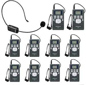 Retekess Church Translation System with 1 TR503 FM Transmitter Headset and 10 PR13 FM Radio Receivers, FM Listening System for Factory Museum School(Case of 1 Transmitter 10 Receivers)