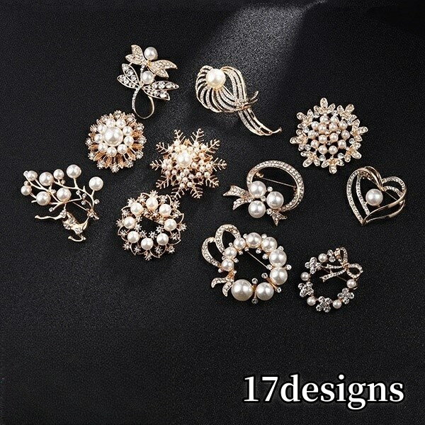 送料無料 ブローチ バッジ レディース 女性 アクセサリー ファッション雑貨 小物 ハート ラウンド リース リーフ 枝 雪の結晶 リボン ラインストーン フェイクパール ゴールドカラー 綺麗 エレガント おしゃれ 可愛い キュート プレゼント ギフト