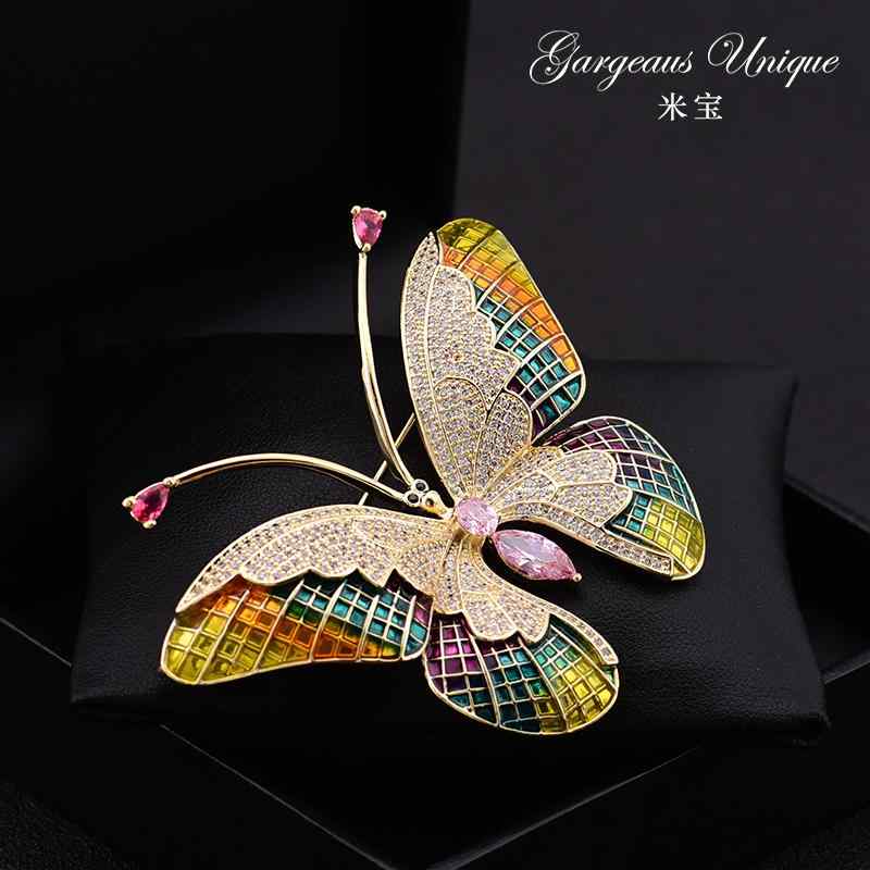 ・素材: 銅、キュービックジルコニア象嵌・スタイル: レディース、エレガント、個性的なトレンド・形状: 動物・加工方法: メッキ・カラー: ブルー・人気要素: 蝶・機能: 記念、装飾、多機能、贈答、固定・対象: 女性・種類: ブローチ