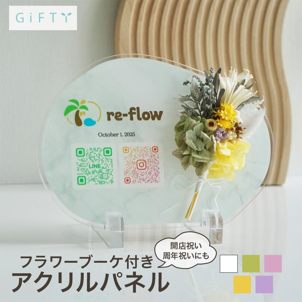 アクリルパネル QRコード フラワーブーケ付き カフェ受付 開業祝い プリザーブドフラワー ナチュラルデザイン 透明アクリル 柔らかい雰囲気 店舗ブランディング【i36】