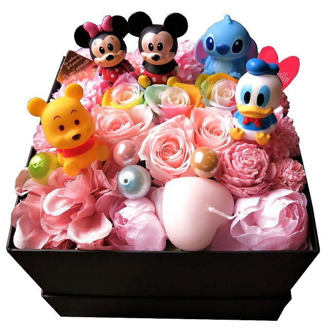 プリザーブドフラワー ディズニー ギフト 箱を開けてサプライズ ミッキー ミニー ドナルド プーさん その他 入り フラワーボックス レインボーローズ入り プリザーブドフラワー