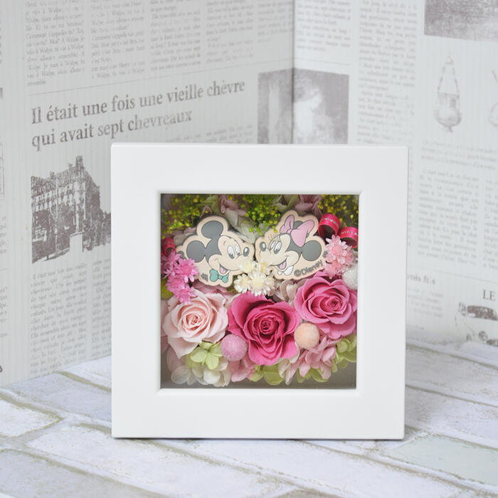 ディズニー 花 プリザーブドフラワー ミッキー&ミニー フレーム フラワーギフト 花 結婚祝い 贈り物 プレゼント 母の日 誕生日祝い 退職祝い 引越し祝い 新築祝い 開店 開業 お祝い 女性 母 祖母 彼女 ブリザードフラワー ブリザーブドフラワー
