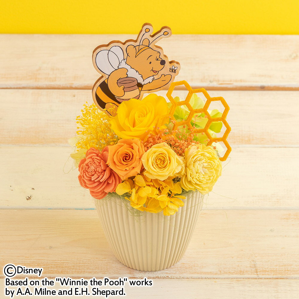 みつばちの巣をイメージした、はちみつカラーのお花に、みつばちに扮したキュートな「くまのプーさん」のウッドプレートを添えました。プリザーブド&アーティフィシャルアレンジメントなので、お手入れ簡単で長くお飾りいただけます。商品番号:7598TF2889お届け 5日後以降でご指定可注文締切2026/03/26 14:00まで商品内容プリザーブドフラワー(バラ、カスミソウ、アジサイ)、樹皮製造花樹脂製花器、ハニカムフェルトマット、オリジナルウッドピック、ファイバー大きさ高さ:約19cm 幅:約13cm 奥行き:約12cm 商品同梱物品質カード:お手入れのしおり、品質上のトラブルの際の連絡先(お客様相談室)注意事項※プリザーブドフラワーは生花ではございませんので水やりの必要はありません。高温多湿を避けてお飾りください。※商品の色・形態は、多少写真と異なる場合がございます。※記載されている以外の写真の小物類は商品に含まれません。【お届けについて】※お届け日を必ずご指定ください。カートページでお届け日をご選択いただかない場合は、ご購入いただく商品の最短のお届け日でご手配させていただきます。※お届け日は『カートボタン前』、もしくは『購入手続き画面のお届け日選択』にてご指定いただけます。※配送期間の限られた商品がござます。決められた期間内で、お届け日をご指定ください。※お届け出来ないお日にちを選択の場合、キャンセルさせていただく場合がございます。配送期間をよくご確認の上、ご注文ください。※14時以降のご注文はプラス1日お時間をいただきます。※他の商品との同梱は承っておりません。1商品1梱包となります。※離島・郡部など、一部お届けできない地域があります。▼詳細はこちら。【ご購入前に必ず、お読みください】※お支払い・お届けに関する ▼詳細はこちら。※ご不明点は、▼ヘルプページにてご確認頂けます。