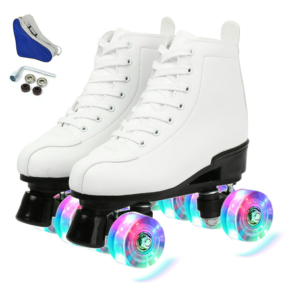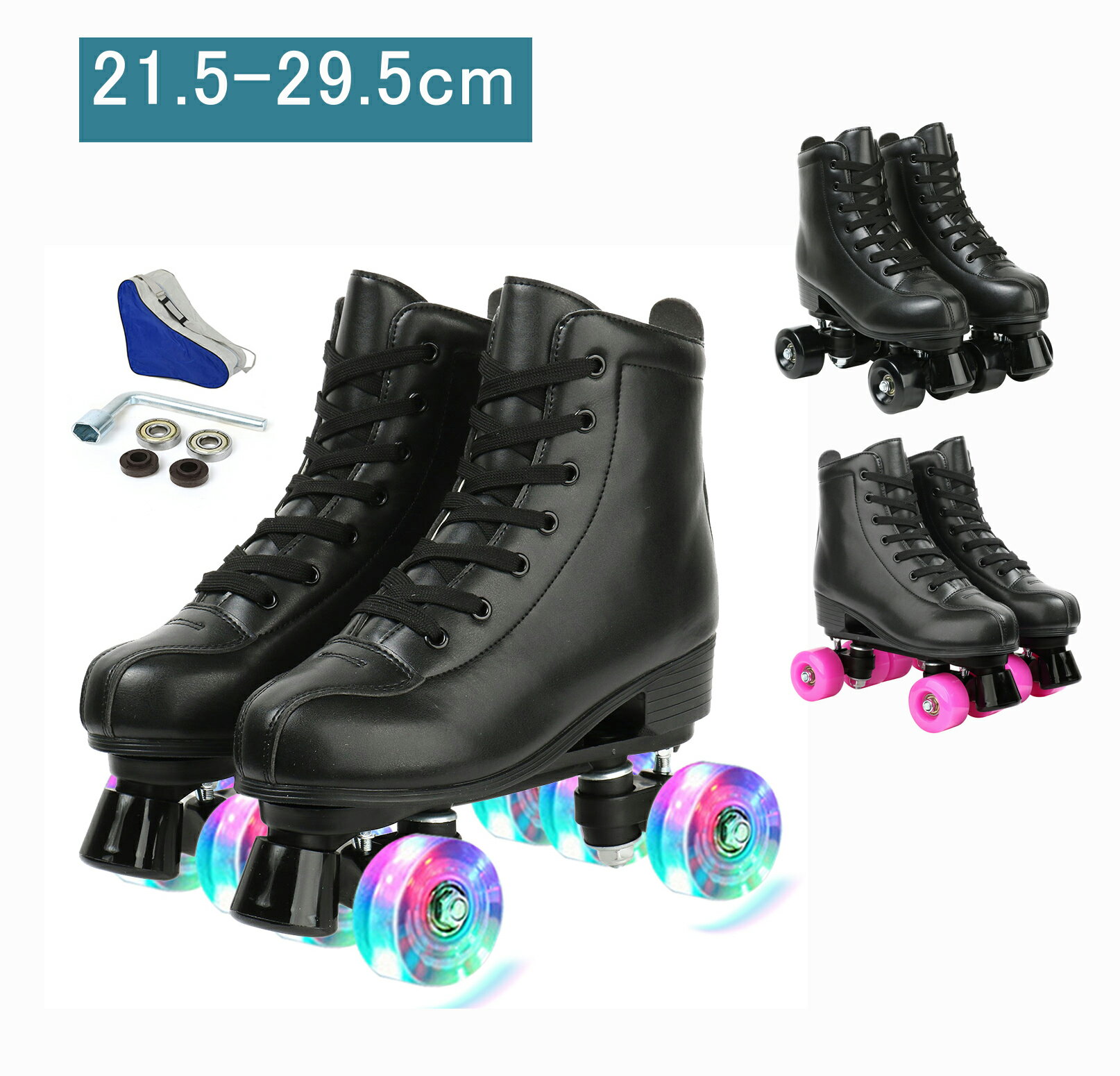 【素材】耐摩耗性があるPU製のローラースケート。【デザイン】2列4輪のデザインなので、スムーズを保証します、更に安心してスケーティングに集中する事が可能になりました。【特色】快適な履き心地とフィット感をもたらします。長時間の着用でも汗でべたつかず快適。【お勧め】安定感が大幅に向上させ、初心者でもトライしやすいです。長時間の運動でも足を快適に保ちます。【シーン】お子様から大人の方までお楽しみいただけます。広場、公園などの広い場所で簡単に運動をできます。記念日、誕生日などのお祝い・贈り物(ギフト)にも適応です。 サイズ34(22.0cm) 35(22.5cm) 36(23.0cm) 37(23.5cm) 38(24.0cm) 39(24.5cm) 40(25.0cm) 41(25.5cm) 42(26.0cm) 43(26.5cm) 44(27.0cm)サイズについての説明素材合皮色ブルー(フラッシュ付き) ピンク(フラッシュ付き) ホワイト(フラッシュ付き) ブラック(フラッシュ付き) ブルー(フラッシュなし) ピンク(フラッシュなし) ホワイト(フラッシュなし) ブラック(フラッシュなし)備考 ●サイズ詳細等の測り方はスタッフ間で統一、徹底はしておりますが、実寸は商品によって若干の誤差(1cm〜3cm )がある場合がございますので、予めご了承ください。●製造ロットにより、細部形状の違いや、同色でも色味に多少の誤差が生じます。●パッケージは改良のため予告なく仕様を変更する場合があります。▼商品の色は、撮影時の光や、お客様のモニターの色具合などにより、実際の商品と異なる場合がございます。あらかじめ、ご了承ください。▼生地の特性上、やや匂いが強く感じられるものもございます。数日のご使用や陰干しなどで気になる匂いはほとんど感じられなくなります。▼同じ商品でも生産時期により形やサイズ、カラーに多少の誤差が生じる場合もございます。▼他店舗でも在庫を共有して販売をしている為、受注後欠品となる場合もございます。予め、ご了承お願い申し上げます。▼出荷前に全て検品を行っておりますが、万が一商品に不具合があった場合は、お問い合わせフォームまたはメールよりご連絡頂けます様お願い申し上げます。速やかに対応致しますのでご安心ください。