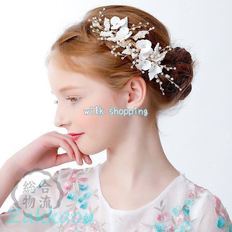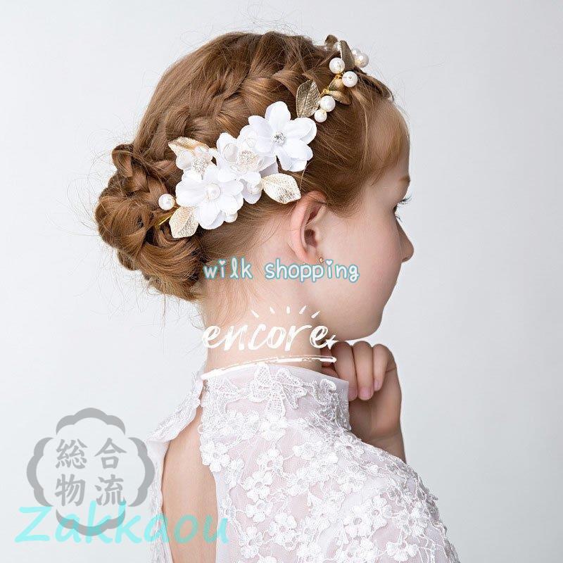 (E)子供髪飾り 発表会 ヘアアクセサリ 子供ドレス 真珠 ヘッドドレス 髪飾り キッズ パール ヘアピン 花 発表会 結婚式 七五三 ピアノ フラワーガール
