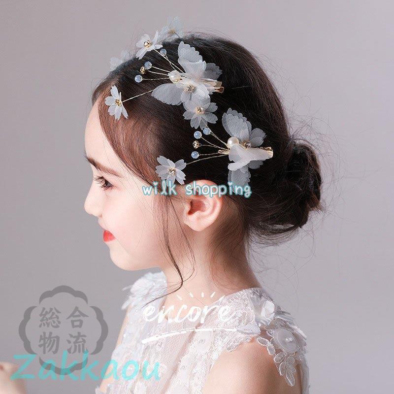 ヘア 子供 髪飾り パール&花のヘアクリップ リボンヘッドドレス 子供 ヘアアクセサリー アクセサリー 結婚式 発表会 キッズ ヘアアクセサ