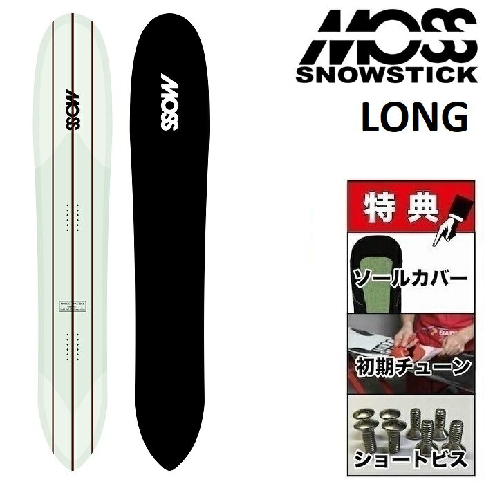 ロングボードが復活。未知なる走破性を体感することが出来る。 SIZE:184cm 【MOSS SNOWSTICK正規販売店】 正規保証書付き。 ご安心してお買い求めください。 MOSS SNOWSTICKスノーボード 他のモデルはこちらから>> 【納期について】 初期チューンやチューンナップをご希望の場合は、チューンナップ完了後の発送となります。 商品入荷後、10日〜2週間ぐらいお時間をいただきます。 ≪必ずお読み下さい≫ 【ご予約商品です】 10〜12月頃の入荷を予定をしております。 メーカーの生産の都合上、遅れる場合がございます。 【ご入金、決済について】 『クレジットカード決済』→決済、またはオーソリを掛けた状態になります。 ※ご注文後、メールにてご連絡させていただきます。 『コンビニ決済、銀行振込』→期日までに全額のご入金をお願い致します。 『代引き決済』→ご予約金を1商品につき1万円以上をご入金お願い致します。 ※後払い決済はお受けできません。 ※ご入金の確認がとれるまでは、ご予約が確定しておりませんのでご注意下さい。 ---------------------------------------------------- ※パソコン、モニター等の環境により色が実物と異なる場合がございます。 ご了承くださいませ。 ---------------------------------------------------- 【メンテナンスについて】 自動WAX浸透装置(サーモBOX・Vサーモ等)の使用はお控え下さい。 サーモバックWAXをご希望の場合は信頼できるTUNE-UPショップでご相談下さい。 もしくは当方提携のチューンナップセンターにて、メーカー安全確認済みサーモバック加工をさせていただきます(別途) また、個人でホットWAXを行う場合、高温でのWAX掛けや、過度に長時間のWAXアイロンによる熱はソール材はもとより、 ボードの構成材料の一部を破損させる可能性がございますのでご注意下さい。 別途チューンナップはこちらから>> 【ショートビス(ネジ)について】 海外メーカーのビンディングををご使用の場合、付属の取り付けビスが長く、 強く締めるとボードのソール側にネジ底が押されて滑走面側が膨らんでしまう場合がございます。 ショートビス(別売)をご購入いただくか、取り付けの際、確認しながらゆっくりネジを締めて下さい。 しっかり締まりきる前にネジが底当たりする場合は、必ずショートビスをお使い下さい。 特に国産の150cm以下のボードは、ボードの厚さが若干薄くなっておりますので、ショートビスの購入をおすすめします。 ショートビスは当店でもご用意しております。 【在庫について】 在庫は実店舗、メーカー在庫を共有しております。 完売の際はご了承ください。 メーカー希望小売価格はメーカーカタログに基づいて掲載しています