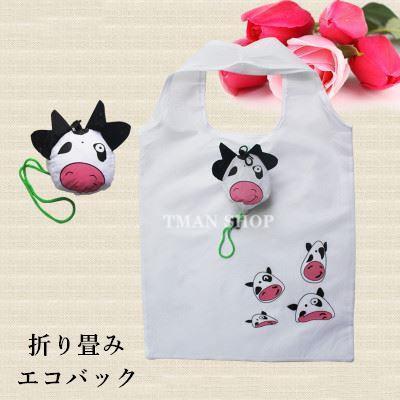 エコバッグ おしゃれ 折りたたみ かわいい コンビニサイズ 簡単 エコバック 折り畳み ショッピングバッグ レジ袋 買い物バッグ 乳牛 収納 軽量 2点セット
