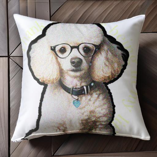 眼鏡 プードル ピンクの襟 ピンクの背景 クッションカバー 45×45cm アニマル柄 おしゃれ 可愛い クッション本体付き 正方形 犬ファン