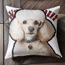 眼鏡 プードル 青色の首輪 クッションカバー 45×45cm アニマル柄 おしゃれ 可愛い クッション本体付き 正方形 犬ファン
