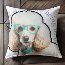 眼鏡 プードル セーター ピンク背景 クッションカバー 45×45cm アニマル柄 おしゃれ 可愛い クッション本体付き 正方形 犬ファン