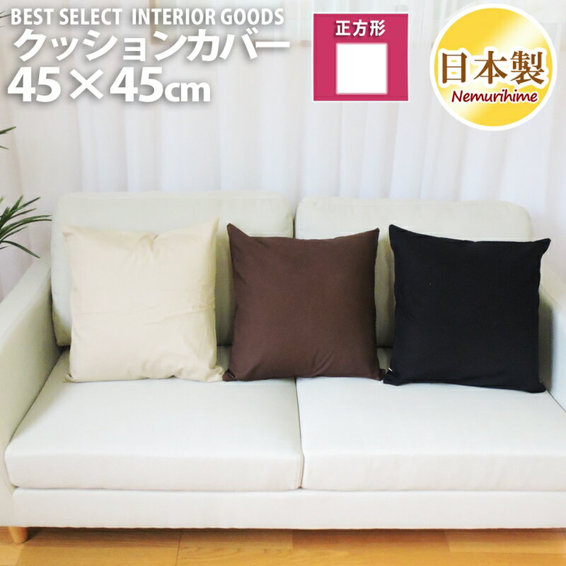 座布団カバー 45×45cm 無地 オックス シンプル 綿100% 日本製 インテリア 洗濯可 クッションカバー 眠り姫 メール便