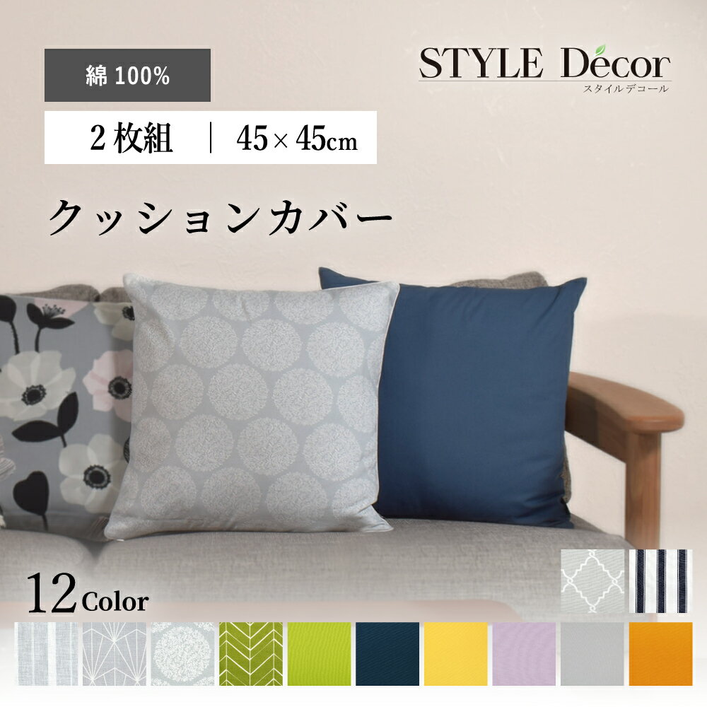 クッションカバー 2枚セット 綿100% 45cm×45cm 北欧 無地 クッション カバー 綿 45 センチ cm おしゃれ かわいい 可愛い オシャレ コットン インテリア シンプル 人気