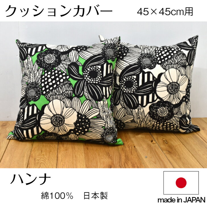 クッションカバー ハンナ 45cm用 コットン100% FABRIC'S日本製 北欧 花柄 フラワープリント おしゃれ モダン モノトーン インテリア